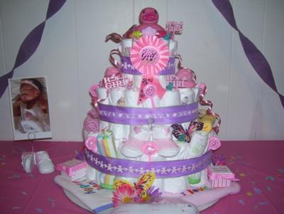 This was my very first diaper cake and I had a BLAST making it! I would say the thing I had the most trouble with was what decor to go with! There are soooo many different things you can do! I can't wait to make another 1!