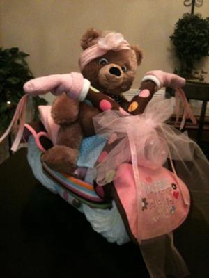 Create a work of art for the Mom-to-be like this Motorcycle diaper cake from Michelle! She went all out and made this incredibly creative diaper cake! We love posting (and showing off) the unique and fun diaper cake ideas from our readers. Thanks for paying it forward, Michelle! Your diaper cake is awesome!