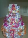 It's a 3 tier diaper cake with beautiful colored ribbon.