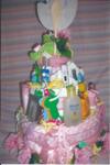 Lori has submitted both a cute diaper cake and a cute story to go along with it. She used some great elements to make her cake with, like those adorable shoes! It turned out gorgeous, Lori! Thanks for sharing with us!