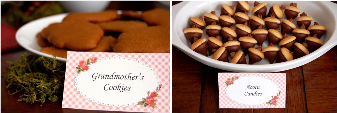 Some other ideas that were not used here but that I considered include chocolate-dipped strawberries (I already had quite a few chocolate-dipped things) or marshmallows dipped in chocolate with sprinkles on top, a twist on the classic s’mores. If you are serving a lunch, you may consider ‘Woodman’s sandwiches’ or forest veggies and dip. More sweet treats include the always-popular cupcakes, which are easily customizable, or mini fudge bites. Transform the basic into something fun, for example regular fruit punch can become ‘Woodland Berry Juice.’